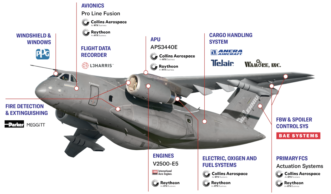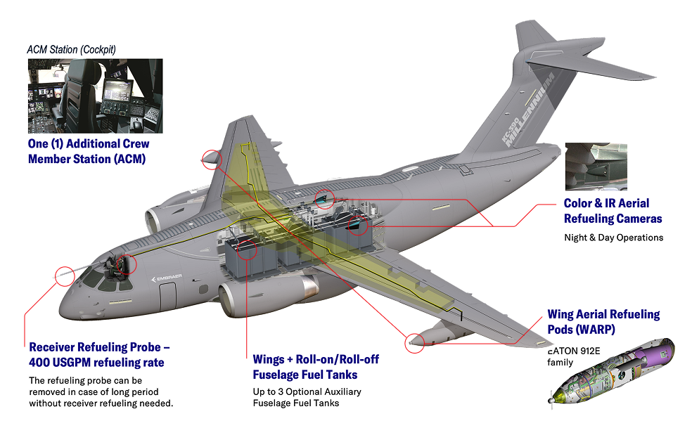 The KC-390 Millennium’s engine and cockpit are manufactured in the U.S.