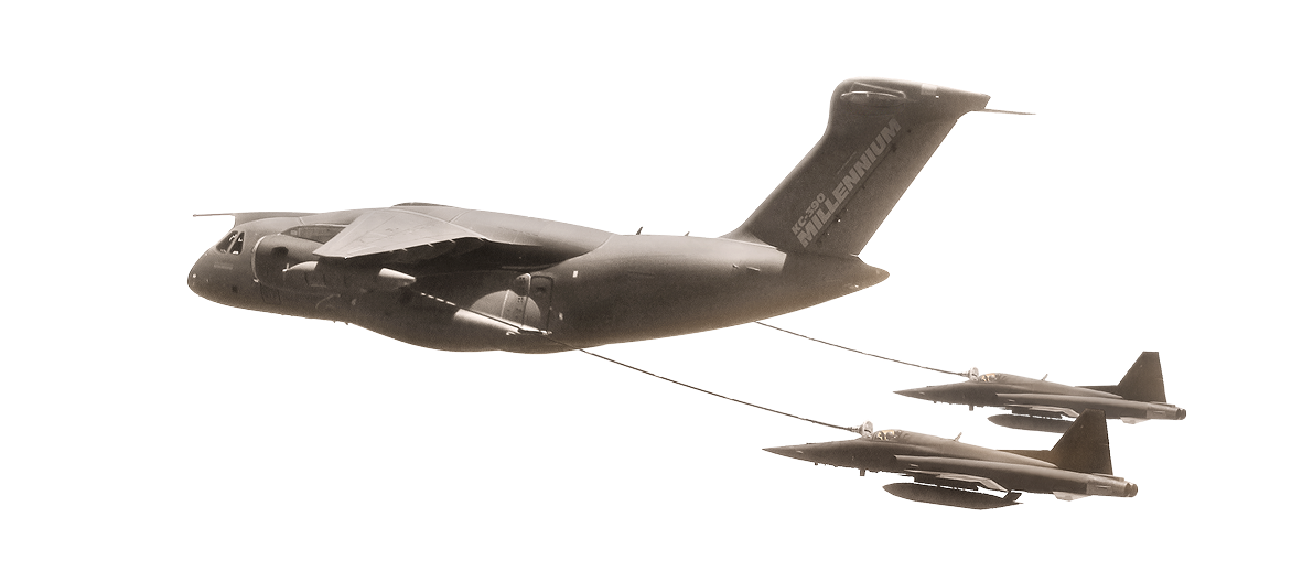 The KC-390 MILLENNIUM can refuel both fixed and rotary wing aircraft, operating at speeds from 120 KCAS to 300 KCAS and at altitudes from 2,000 ft to 32,000 ft.